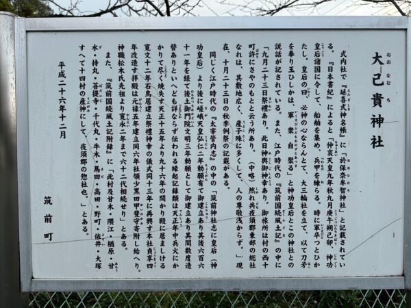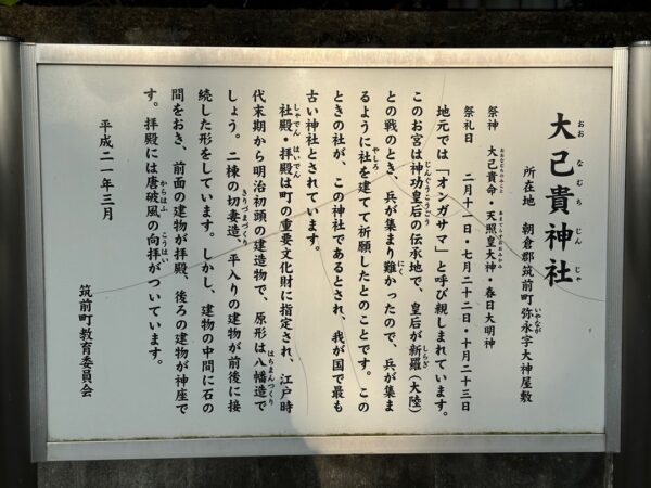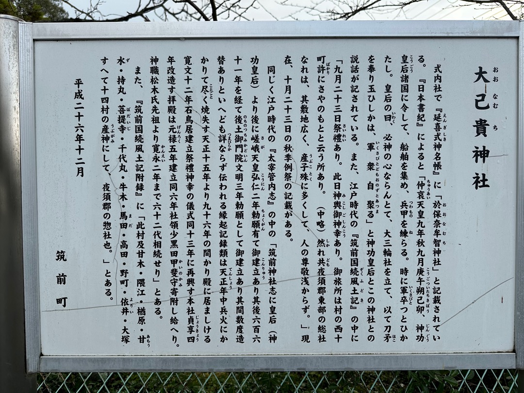 福岡県筑前町 大己貴神社(おおなむち)(於保奈牟智神社)