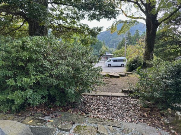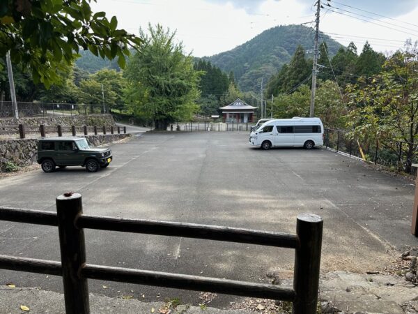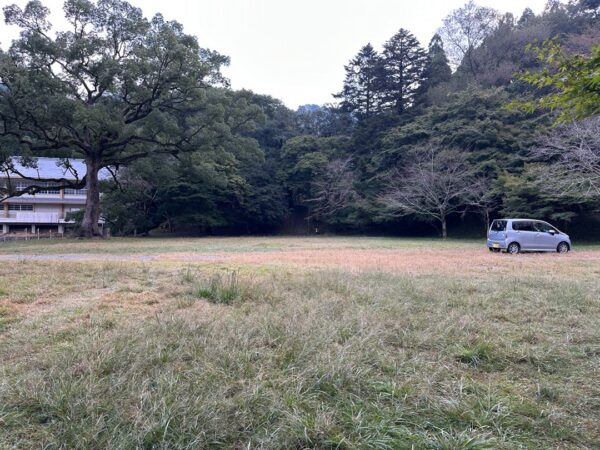 歴史の里公園駐車場に車を駐めました。神社の参道の横にあります。