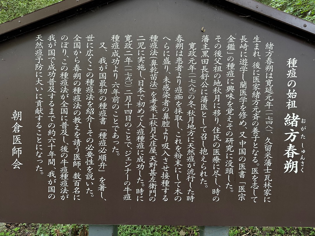 途中に種痘を考え出した緒方春朔(しゅんさく)という方の碑がありました。