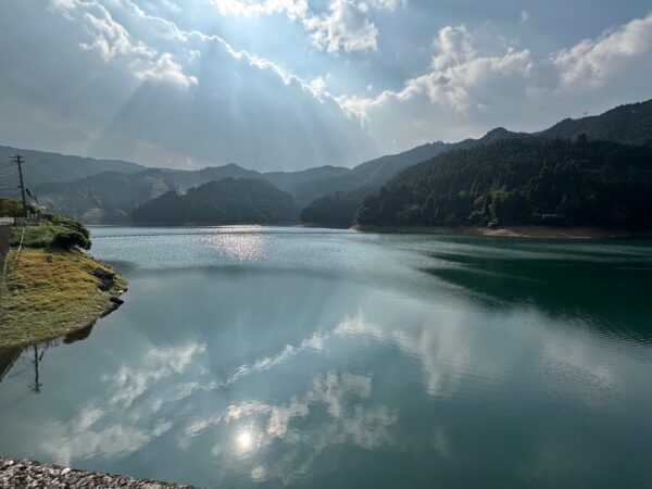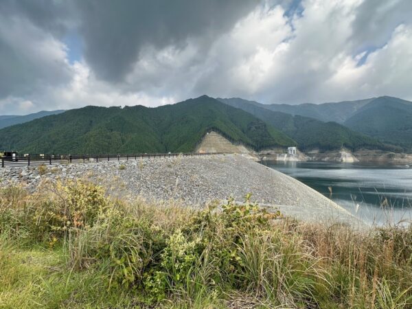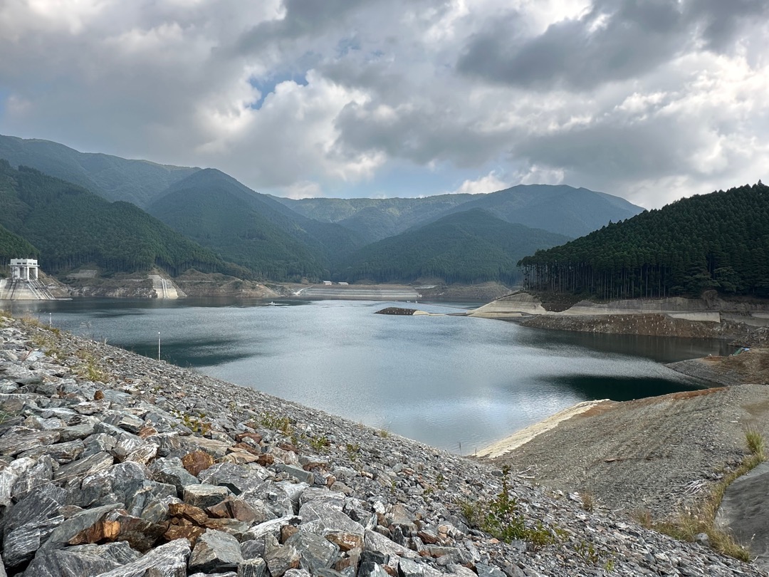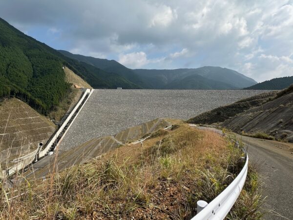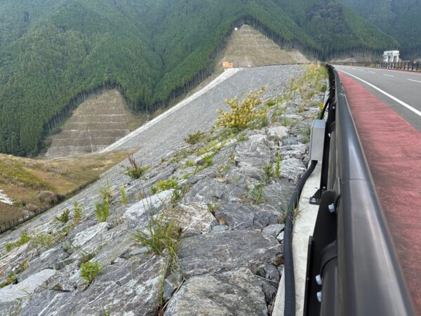 最初にこのダムの堤体が見えてきた時に、助手はキラキラした海が見えたのだと勘違いをしました。それほど、大きなロックフィルダムだったのです。