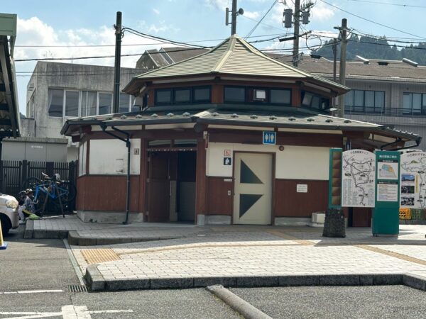 左側に24時間トイレがありました。夜は閉まる情報館もあります。