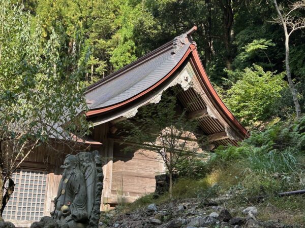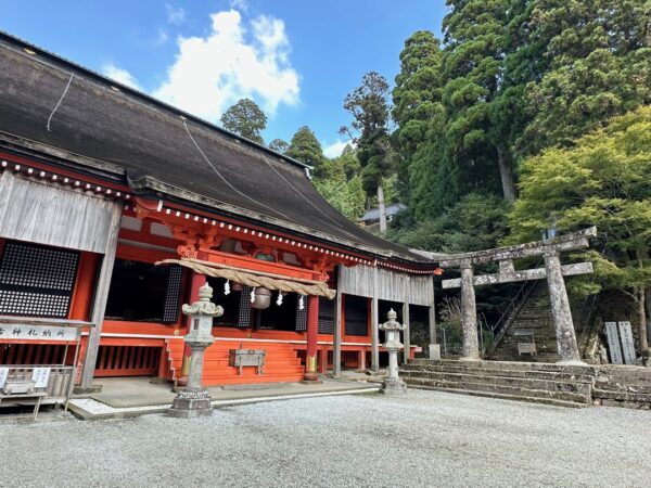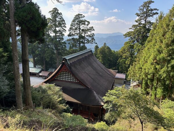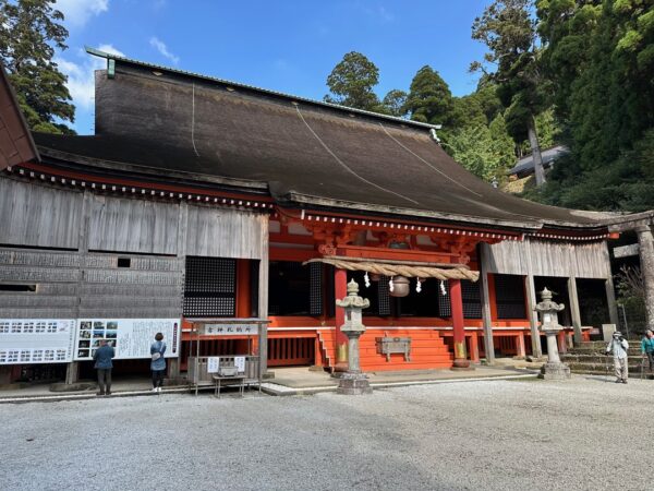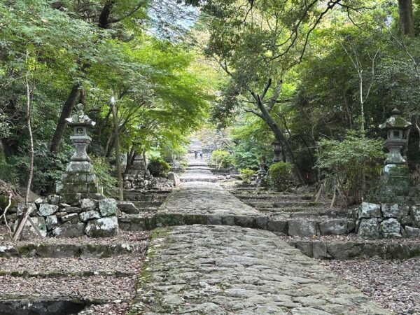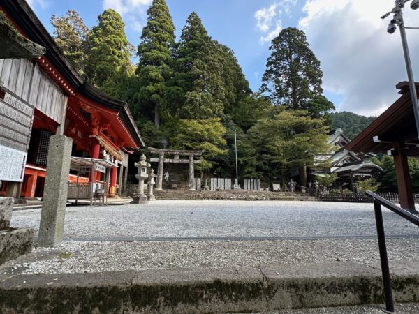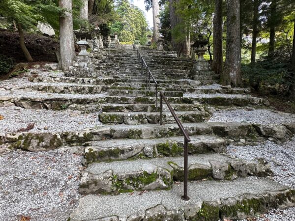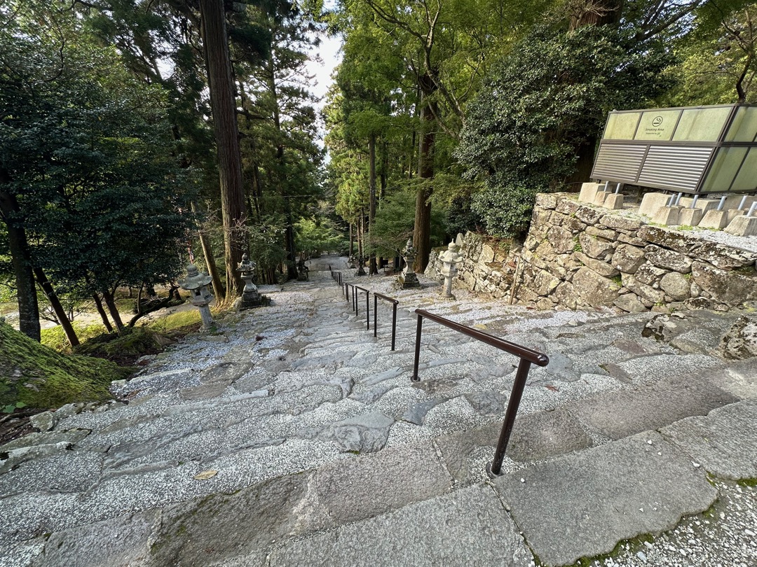 この奉幣殿の右側から、さらに登っていきます。奉幣殿の右側に少しだけ見えている下津宮まで行きます。