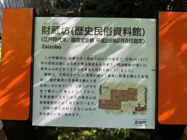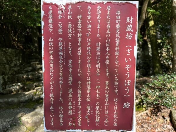 長い参道の脇には、◯◯坊の跡がたくさん残っていました。ここは、財蔵坊です。