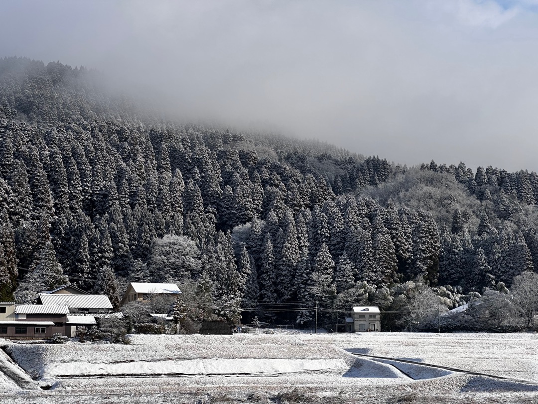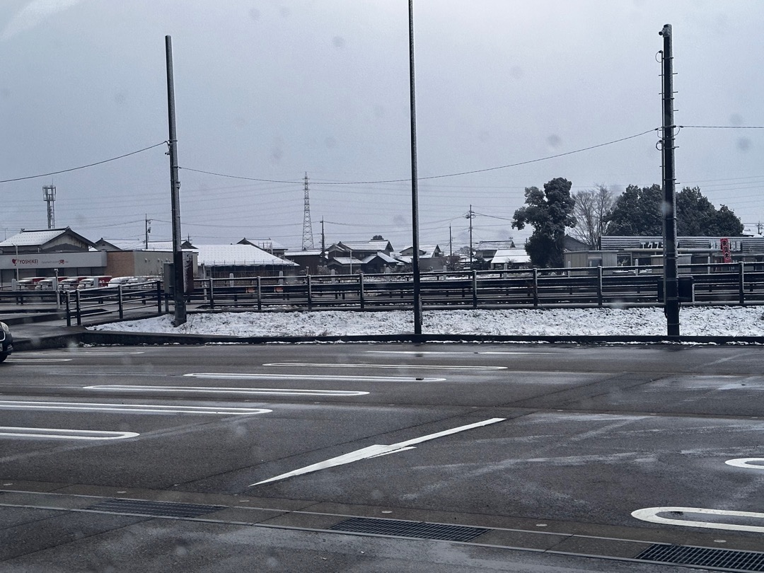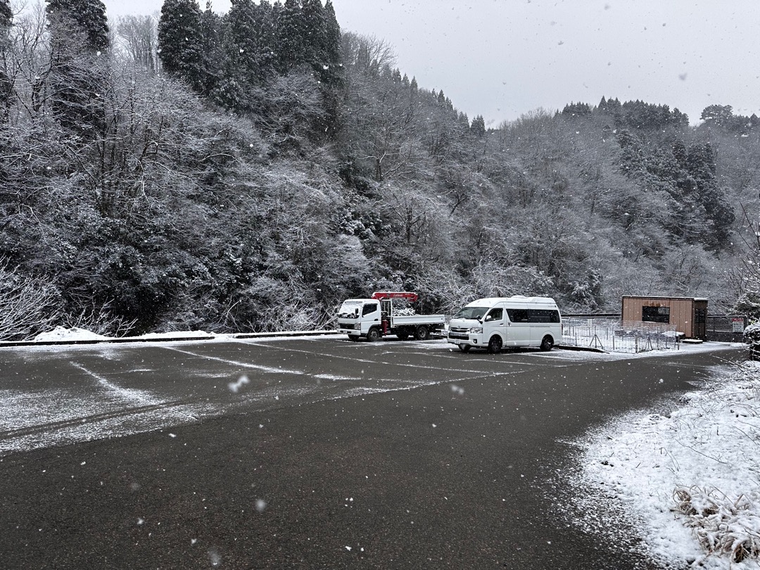 夜中、雪が降っていましたが朝になると止んでいました。周りに少し積もるだけで済んでよかったです。