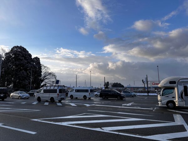 喜多家駐車場に車を駐めました。広い駐車場です。
