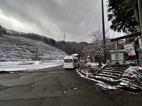ここは、駐車場がなく道の駅で聞いたところ、路肩に駐めてもいいとのことでしたので、神社前の路肩に駐めました。
