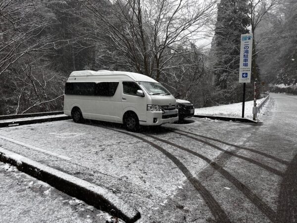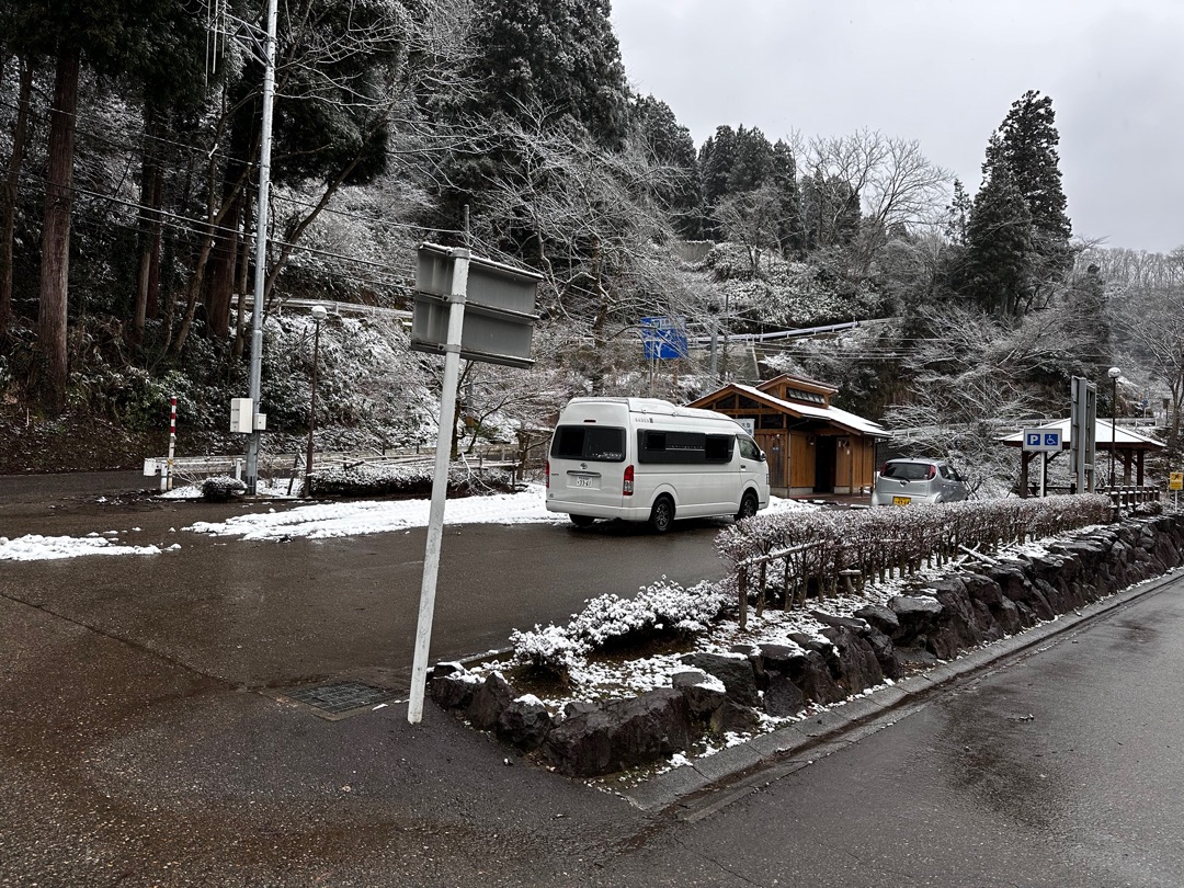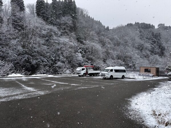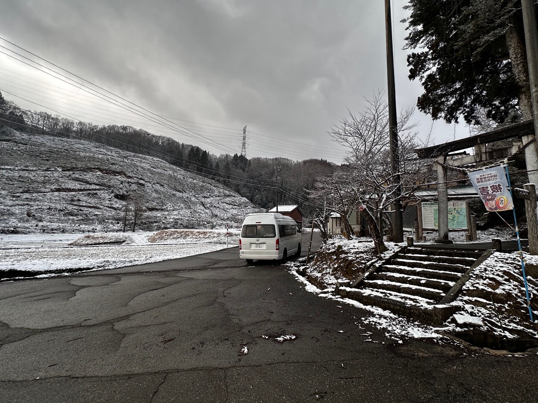 移動途中、あまりにもいい景色だったので車を駐めて写真を撮りました。僕は、南国生まれの都会育ちなので雪を見るとわくわくします。ちなみに助手は、田舎生まれの田舎モンです。