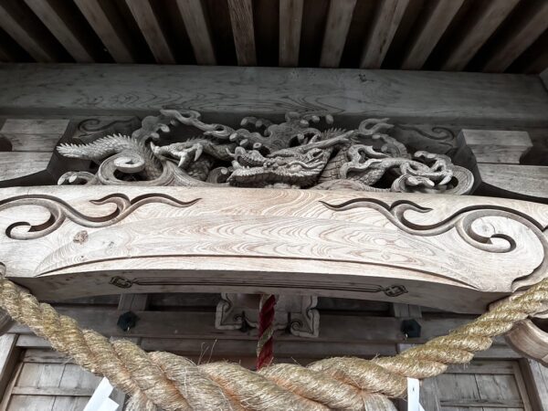 向拝中備えの彫刻は龍でした。御祭神は菊理媛命、天照皇大神です。
