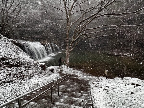 今日は雪が降る中、滝を鑑賞し、加賀藩十村役 喜多家を第28代当主の方に説明いただきながら拝観しました。