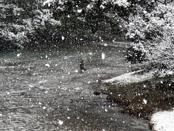 この雪の中、川に入っている人がいる!