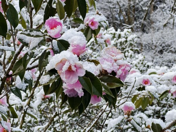 これ椿ですかね。こういうのを見ると雪もいいなぁって思いますね。