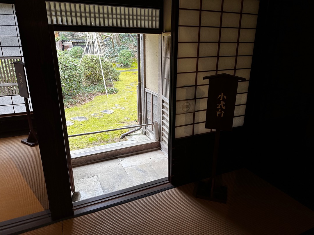 ここから先は、殿様しか使用できない部屋だったそうです。とは言っても、加賀藩の世話役の人が掃除をしていたらしいです。殿様が着替えをしてくつろがれるところなのですが当時は、テレビやゲームのような娯楽がありませんでした。前田の殿様はお茶を嗜まれていたようで、お茶を立てられるような造りになっていました。そのお茶の伝統を引き継いでいるのが金沢で日本三大銘菓で茶菓子が有名なところになったのだそうです。