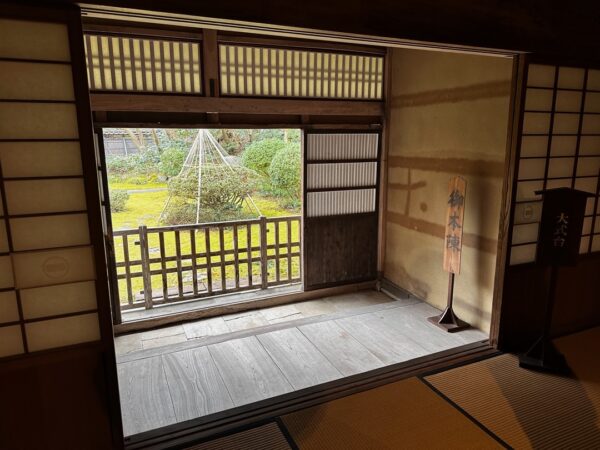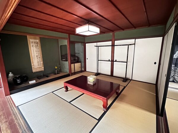 壁は緑で、数寄屋造りになっていました。ここに3人の侍が控えていたそうです。