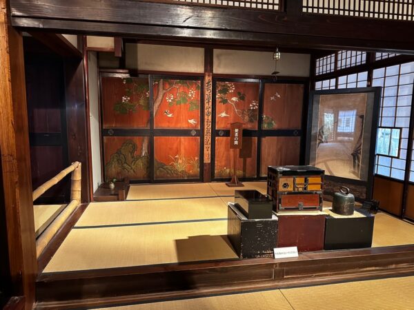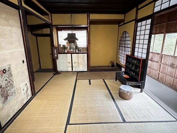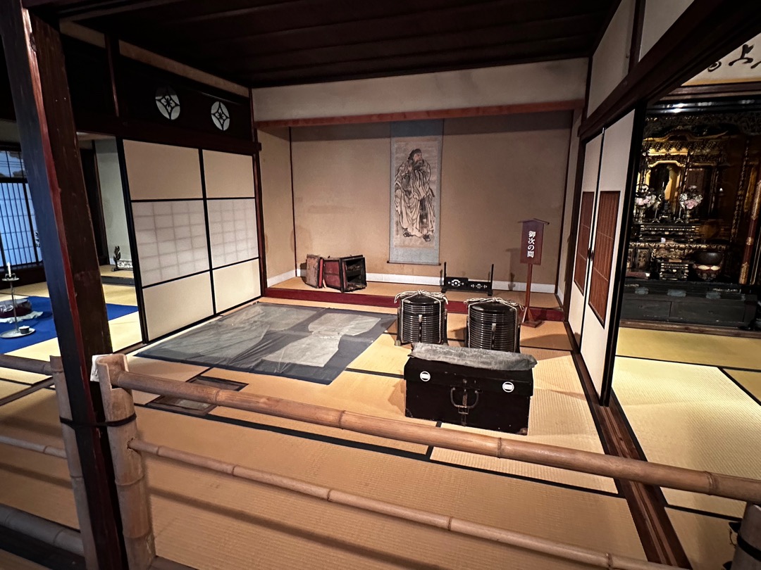 この謁見の間に入り仏壇を拝んで部屋に入るのが礼儀になっていたそうです。殿様より仏様の方が偉いので謁見の間と言っていたとのことでした。160年間のうち、ここに殿様がこられたのは3回だそうです。それでも他の十村よりは全然多いらしいです。