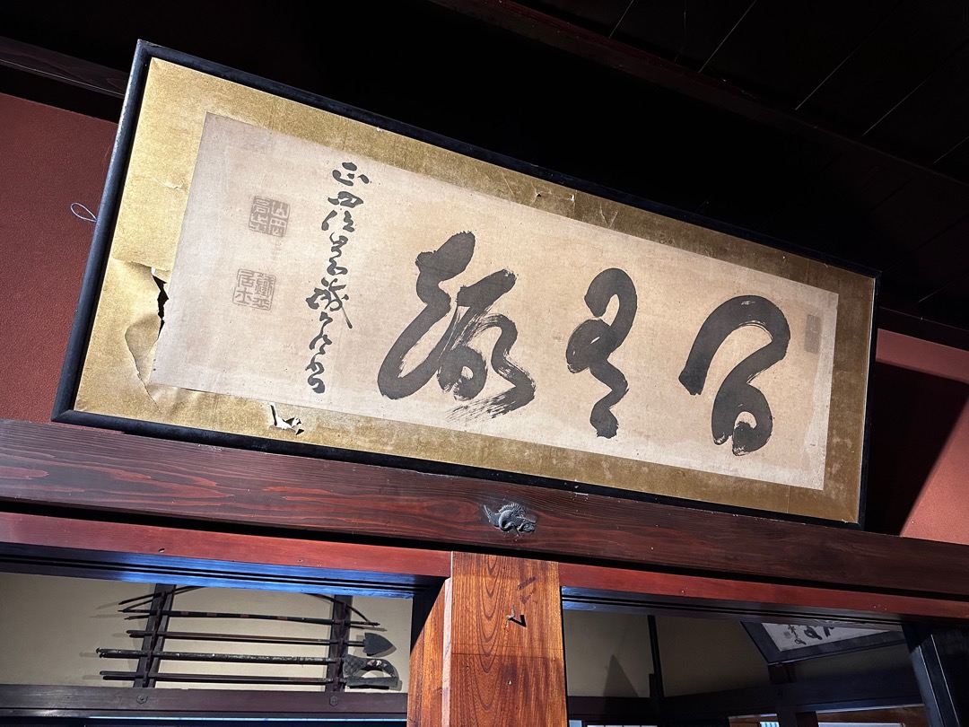 これは、山岡鉄舟の作だそうです。「趣有間」と書いてあるらしいです。読み方を教わりましたが覚えられませんでした。