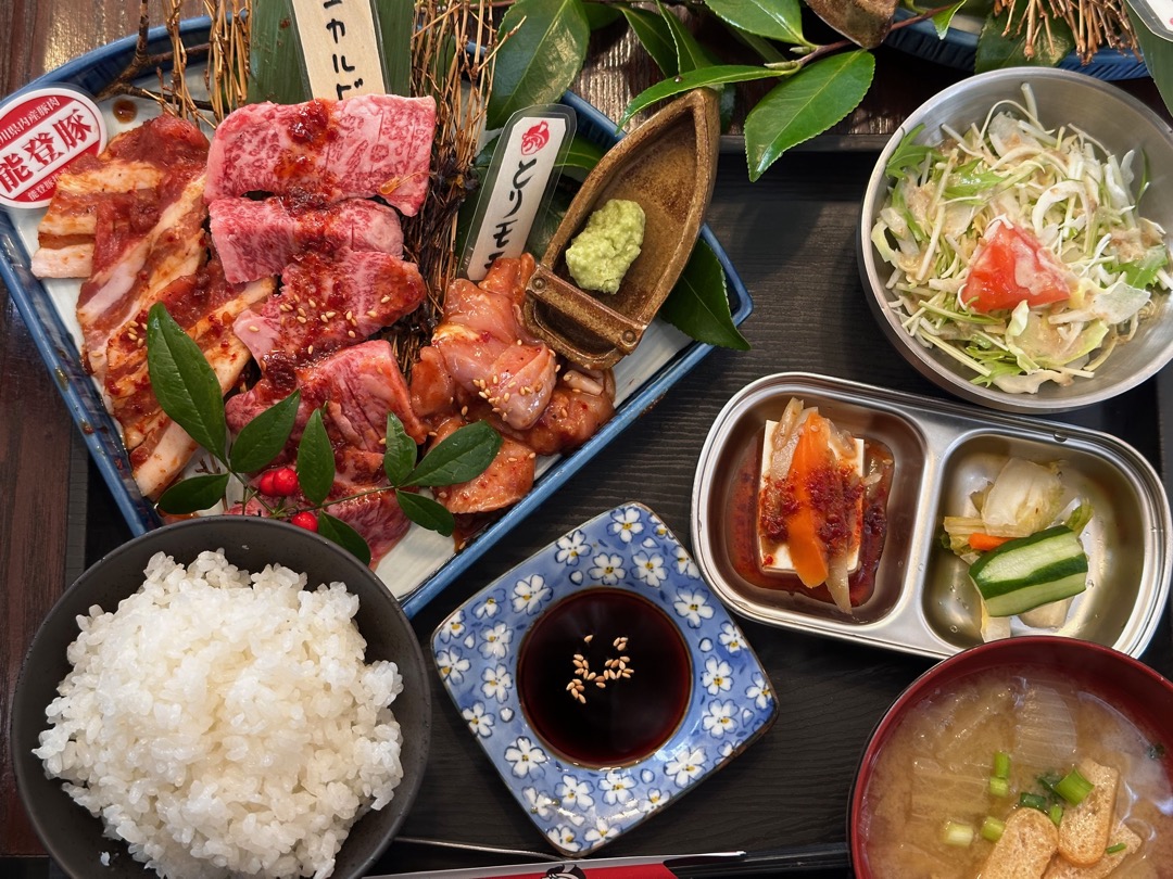 焼肉ランチ3種盛(能登豚、上カルビ、とりモモ) 上 1,628円です。