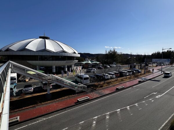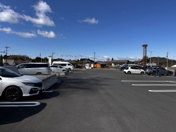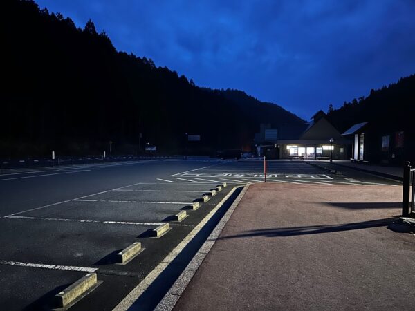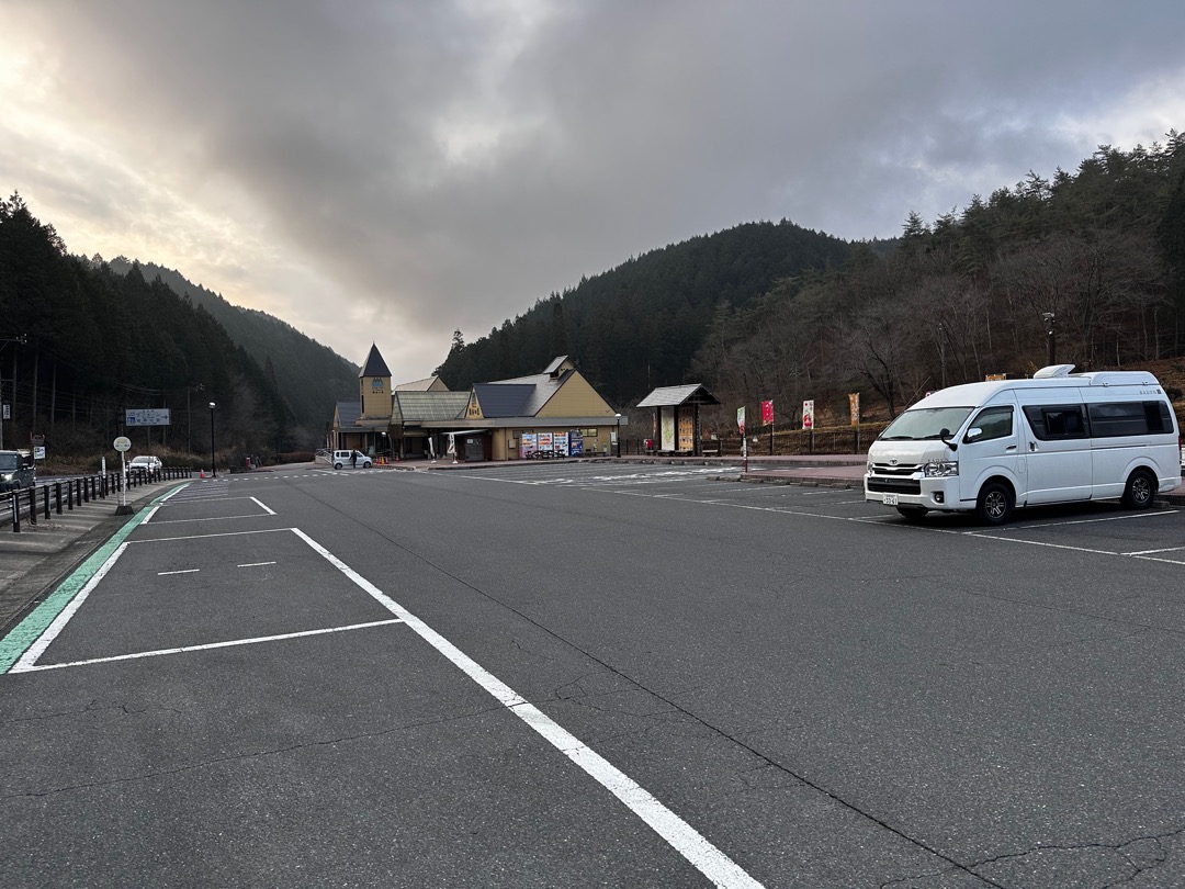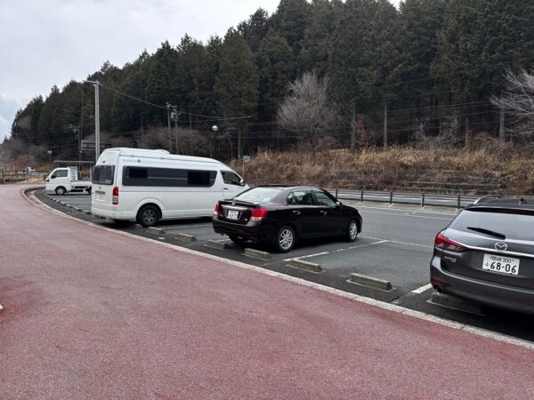 お店を利用する人たちのじゃまにならないように離れて駐めたおかげで、こちらは比較的傾斜が緩やかでした。ここの道の駅は、WiMAX +5Gが入りません。その代わり、道の駅のWi-Fiスポットにアクセスできます。この位置からでもギリギリでアクセスできました。お店に近いところに駐めると確実に入ると思います。