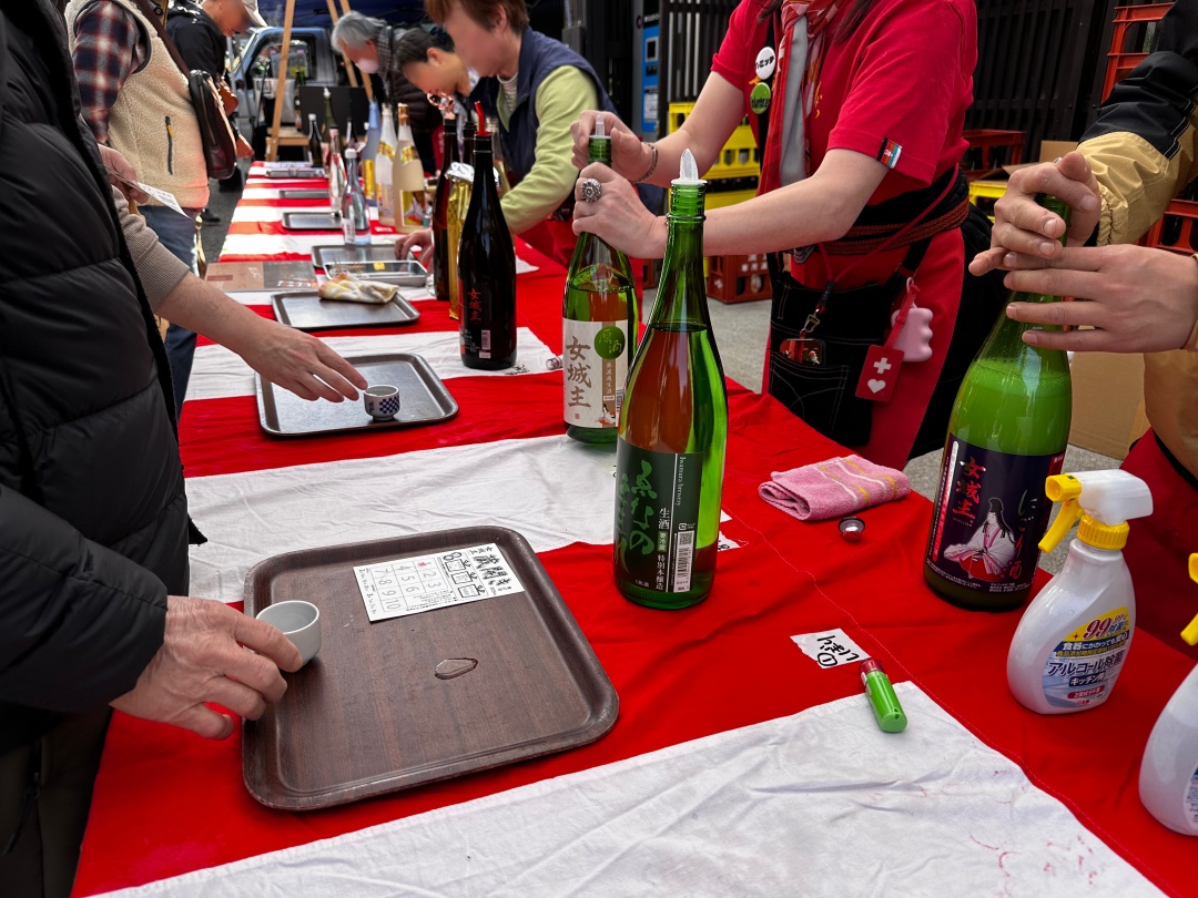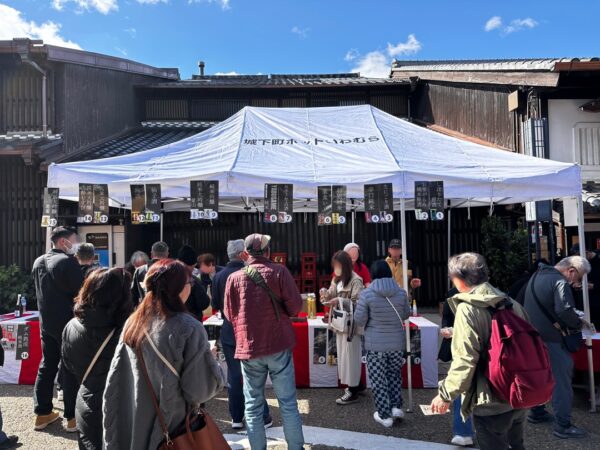 有料の試飲会のようです。ここの造り酒屋の蔵開きで、ここ1ヶ月間の土日は、お酒をいただけるようです。1,000円でスタンプ10個分の権利を買えて、お酒によってスタンプ1〜3個で試飲できるようです。車でなければ試飲したんですがね。残念です。