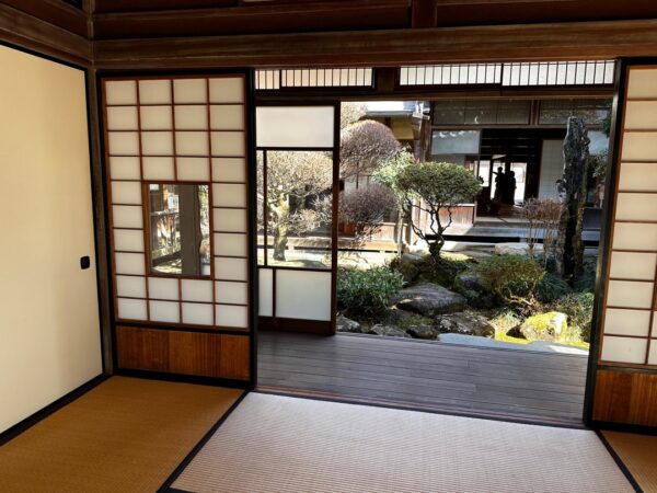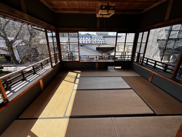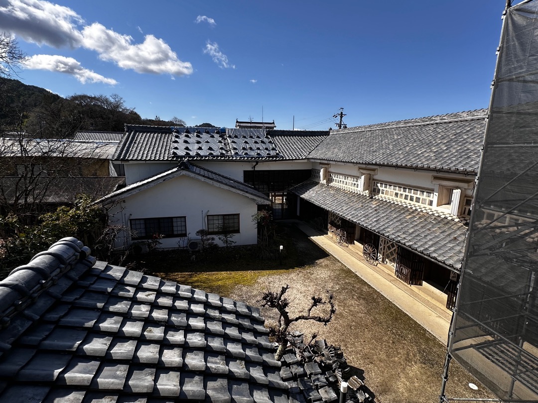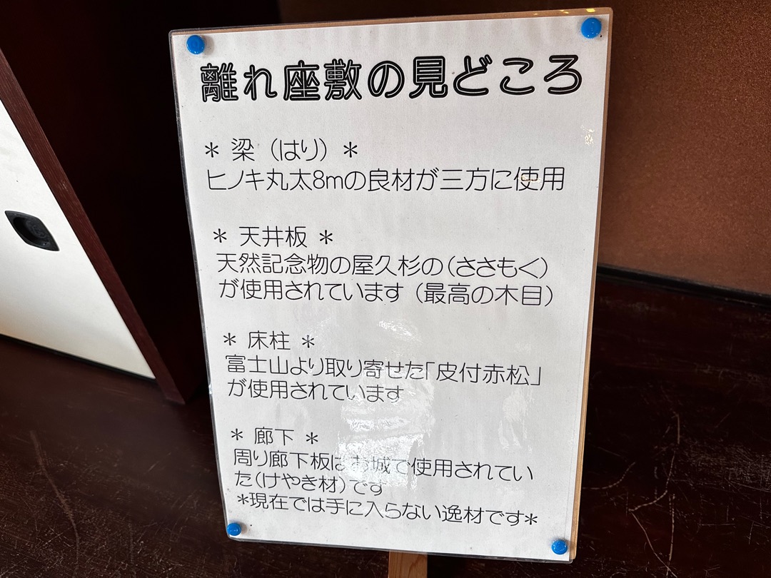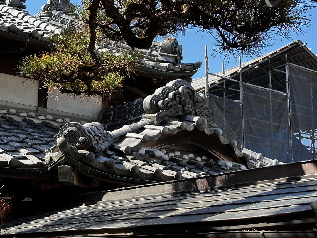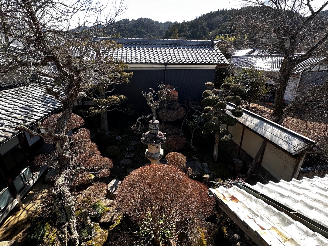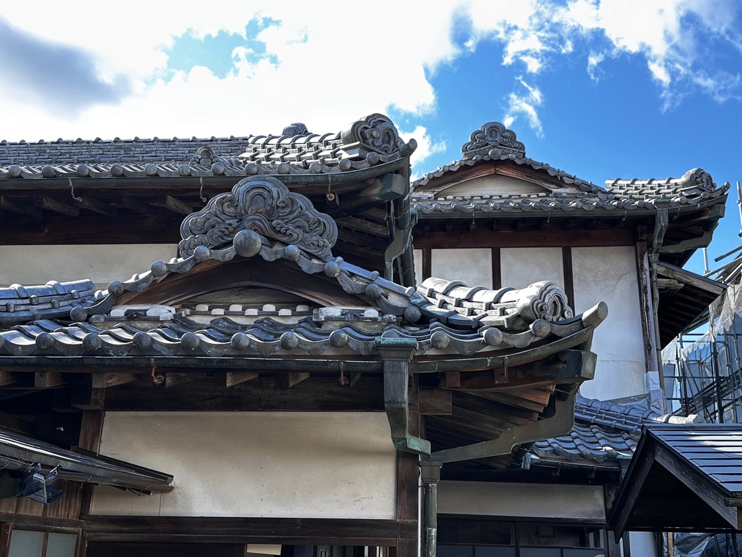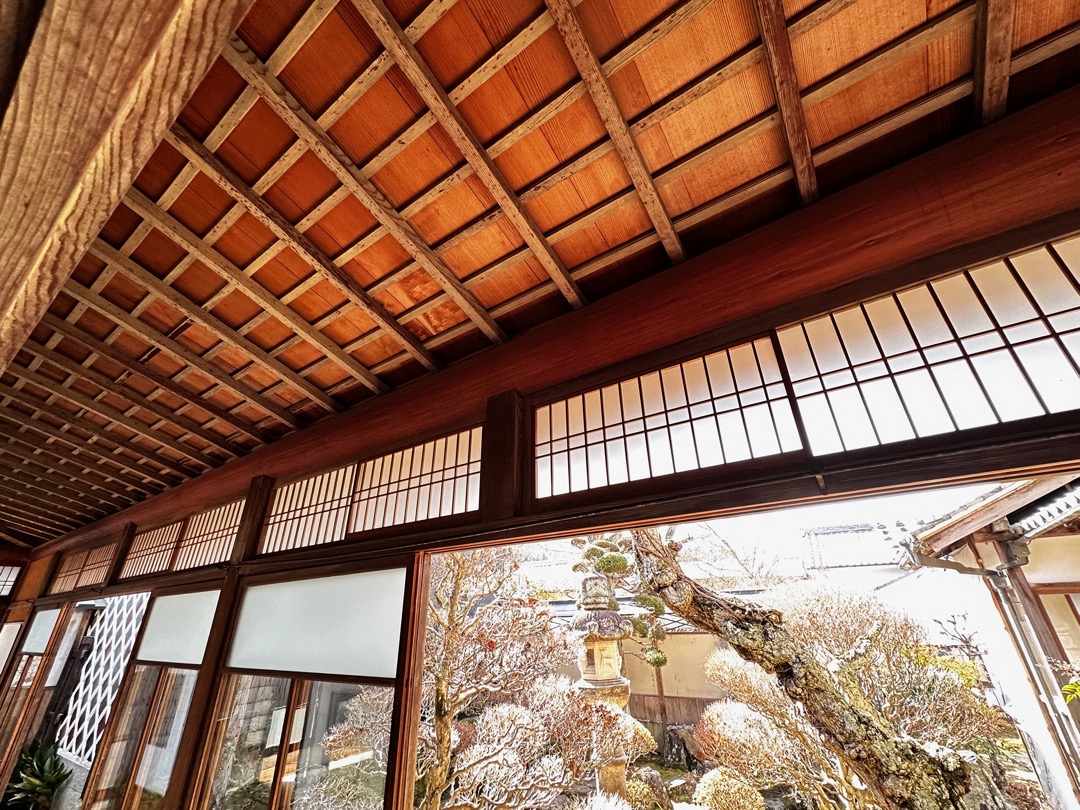 それにもまして僕が驚いたのが、この破風です。これ起破風(むくりはふ)ですよね。ここにある鬼瓦は岩村城から持ってきたと説明されていましたので、おそらく岩村城の御殿から持ってくる時に起破風も一緒に持ってきたのだと思います。この離れは、約100年前に建てられたもので、母屋は200年以上経っているとのことでした。