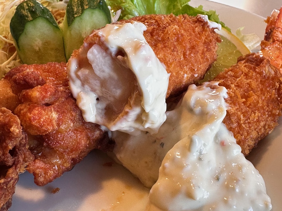衣も薄く丸ごと「エビ食ったぁ〜」って感じのえびフライです。これまで食べたえびフライで一番だと思っています。
