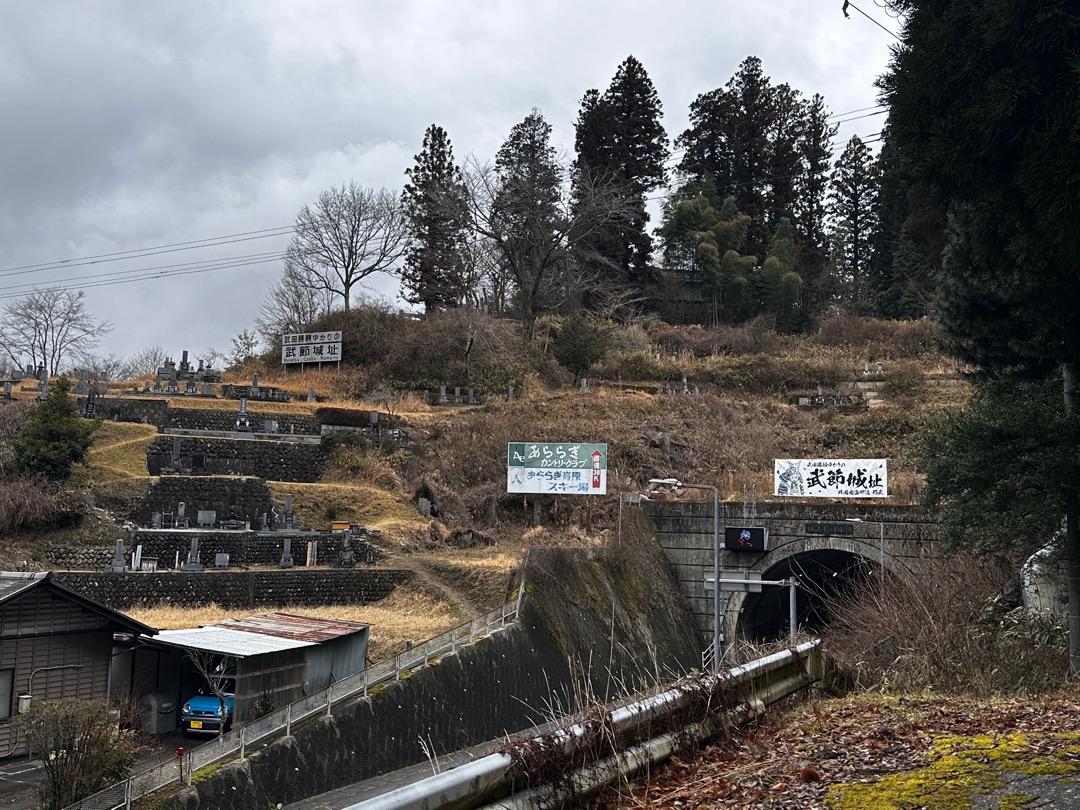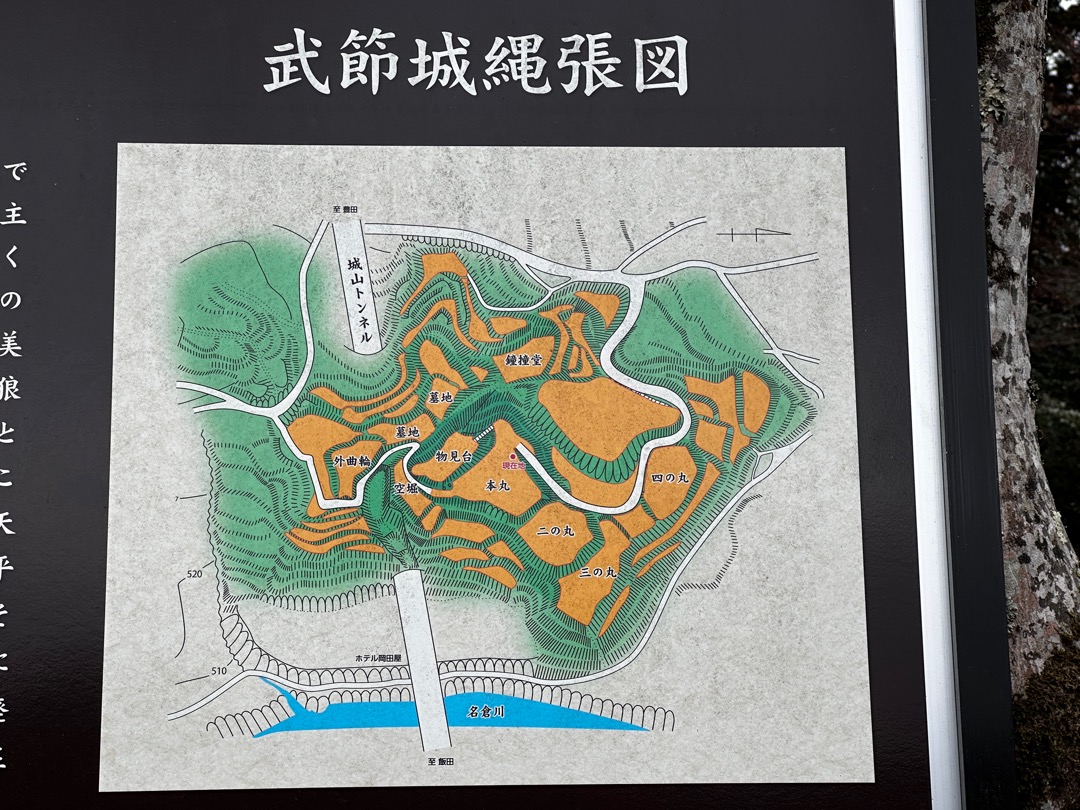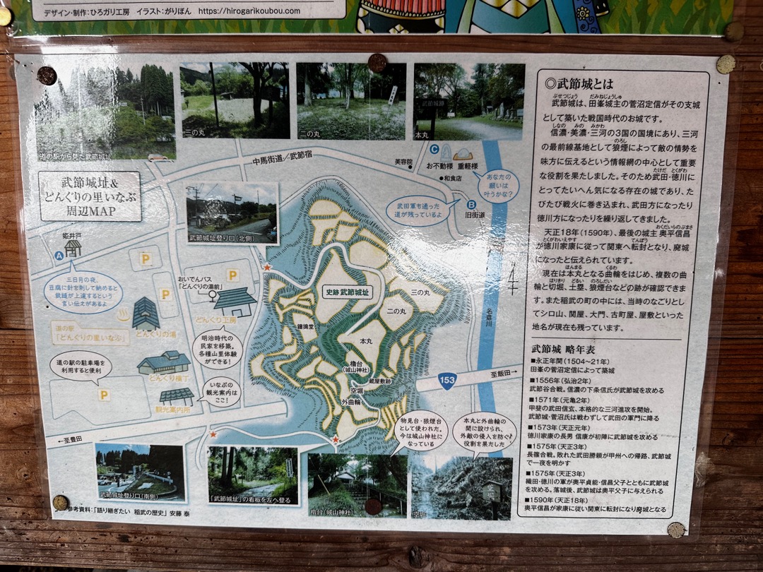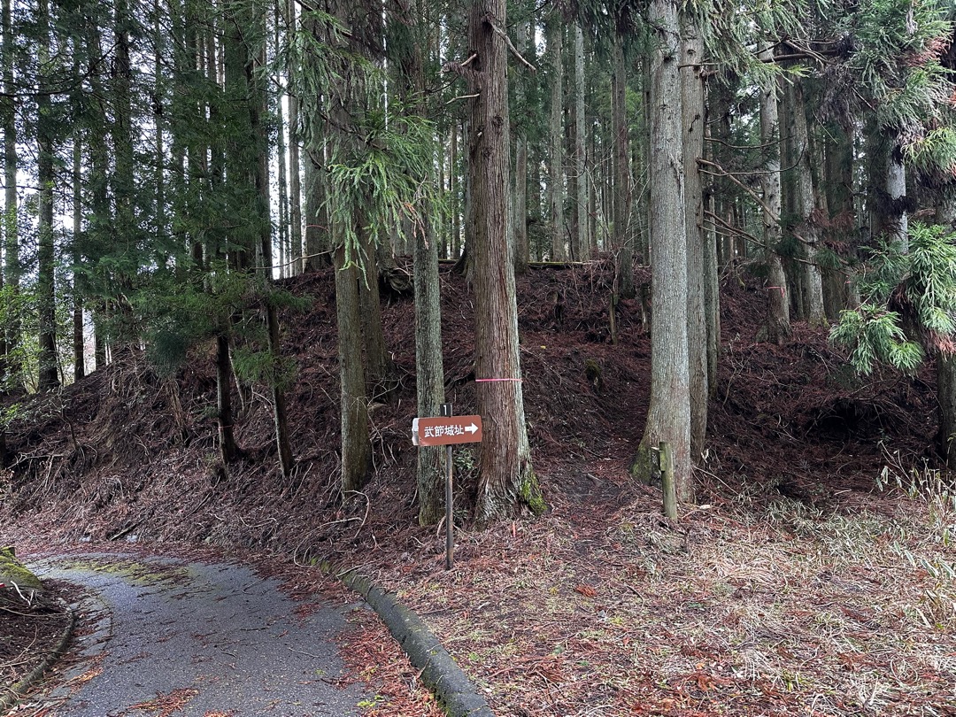 温泉に入る前に、道の駅のお店を見ていたところ、すぐ近くに武田勝頼ゆかりの武節城があることがわかりました。雨も止んだことだし、ちょっと登城することにしました。