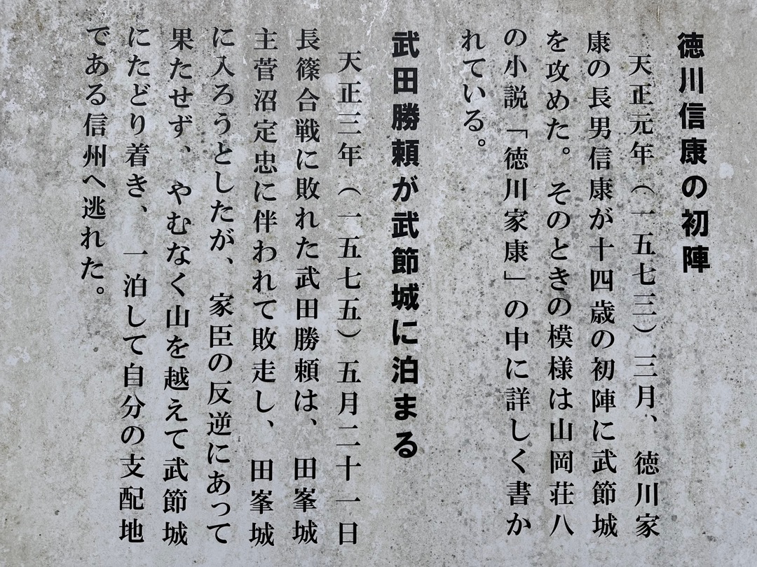 武節城は「長篠の戦い」で敗れた武田勝頼が落ち延びた城として知られています。
