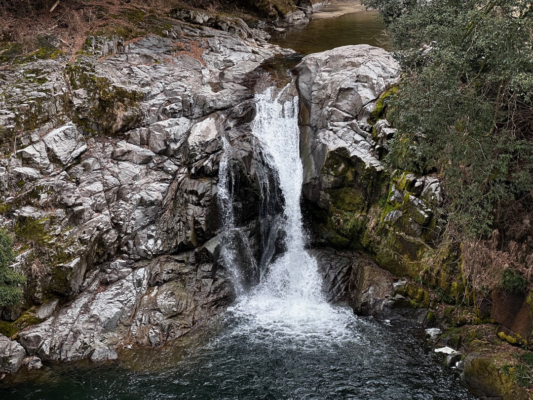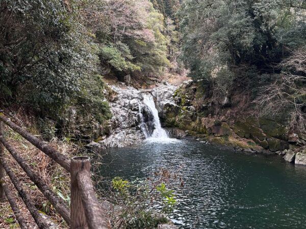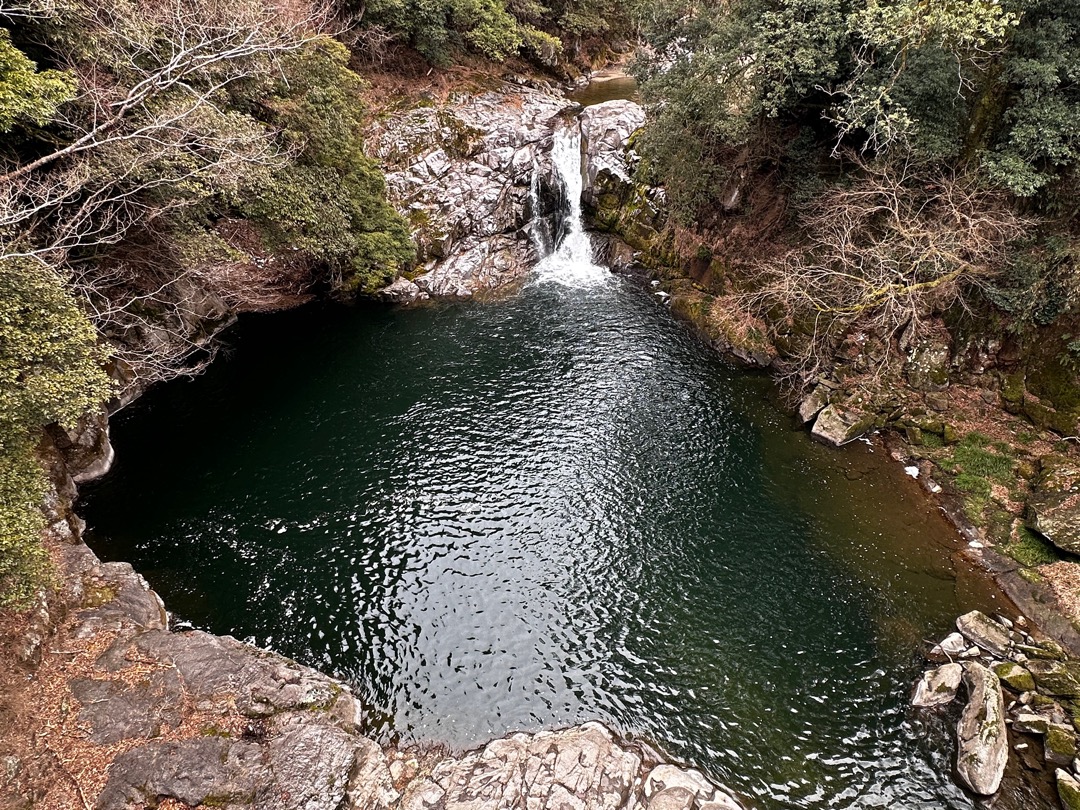 まず、滝見橋の上から滝を観ました。とても大きな滝壺です。というか小さな滝ですと言ったほうがいいかもしれません。