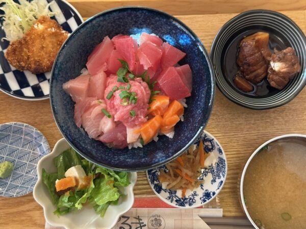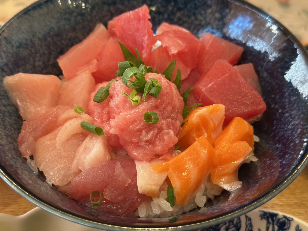 海のサイコロ丼 1,760円税込(赤身、びんとろ、サーモン、鮪フライ、鮪の煮付け
