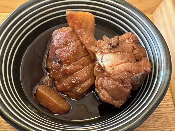 鮪の煮付けです。とても優しい味付けでした。ご満悦おばさんの言葉を借りれば、魚の卵を煮るときの味付けと言っていましたが、まったくそのとおりの味でした。美味しかったです。