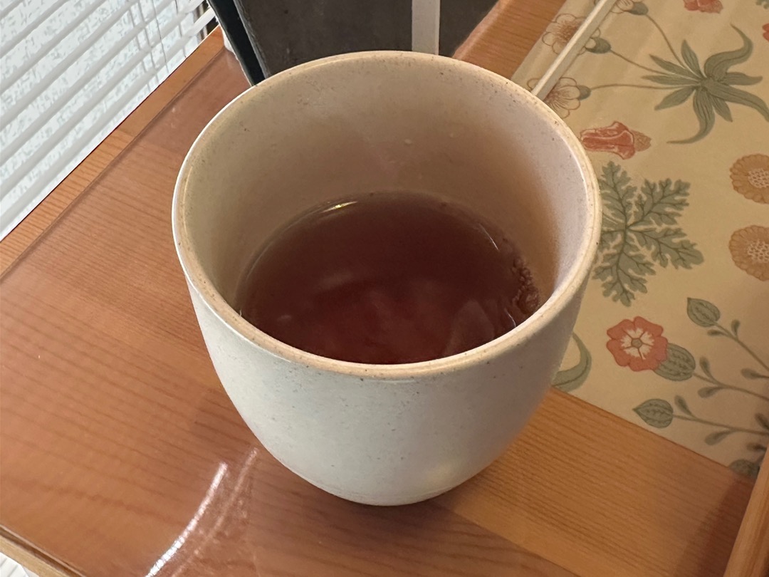 ご満悦おばさんが、「美味しいから、もういっぱいいただいてくる」と行って、注ぎに行って戻ってこられると「ほうじ茶って書いてあった」とのことで、ドテッとなりました。