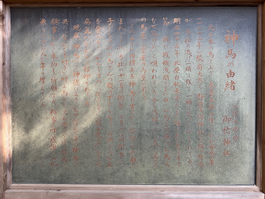 由緒によれば、この馬も左甚五郎の作と言われているようです。先ほどの神馬と同じ人が作ったとは思えないのですが…。
