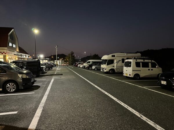驚いたことに昨晩この写真の右側にいた人たち(僕も含めて)は、うるさいので移動をしたのですが、車中泊の車で埋まっていました。23時かそれ以降に到着された方々なのだろうと思います。