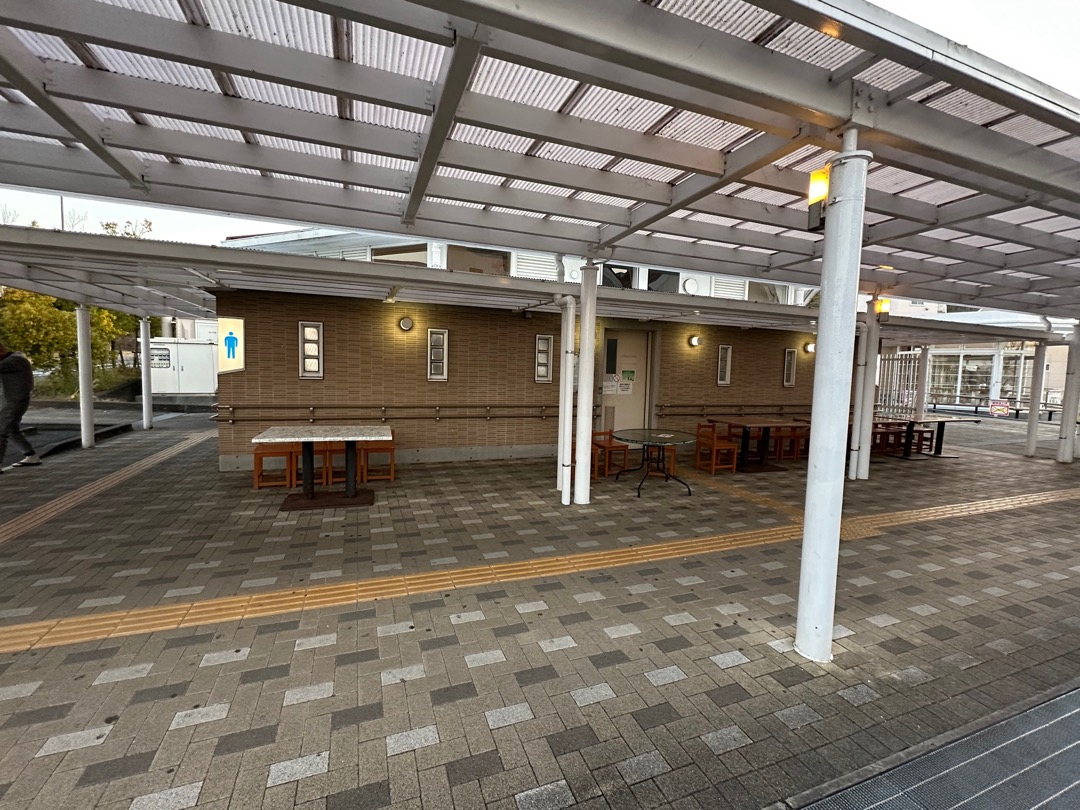 この写真は朝撮った写真ですが、昨晩移動してきた時は、この写真の右側辺りに兄ちゃんたちが座り込んで話してました。