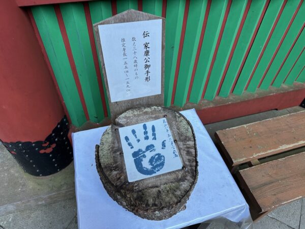 門をくぐると左側に家康公御手形がありました。家康公の身長の割には大きな手だなと言う印象を持ちました。