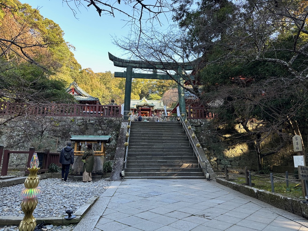 ちなみに、久能山東照宮に参拝するルートは、この石段を登るルート以外に日本平からロープウェイで行く方法もあります。
