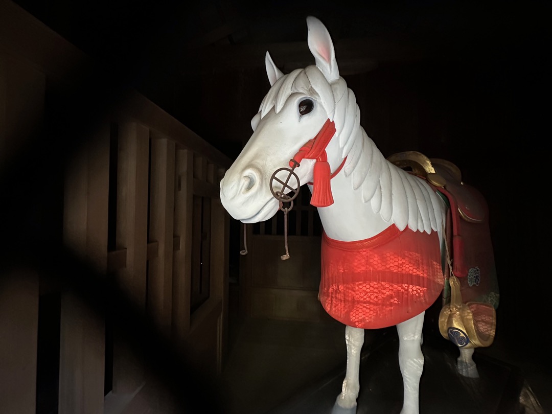 愛馬の彫刻は名工左甚五郎作と伝えられるそうです。優しい馬ですね。