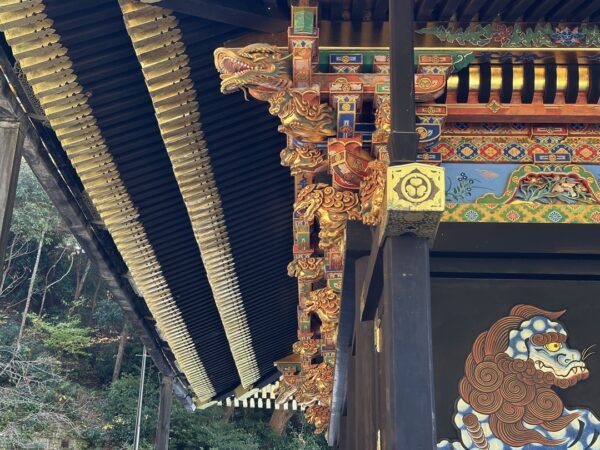 楼門を過ぎると左手に家康の愛馬の彫刻が納められた神厩(しんきゅう)(重要文化財)がありました。