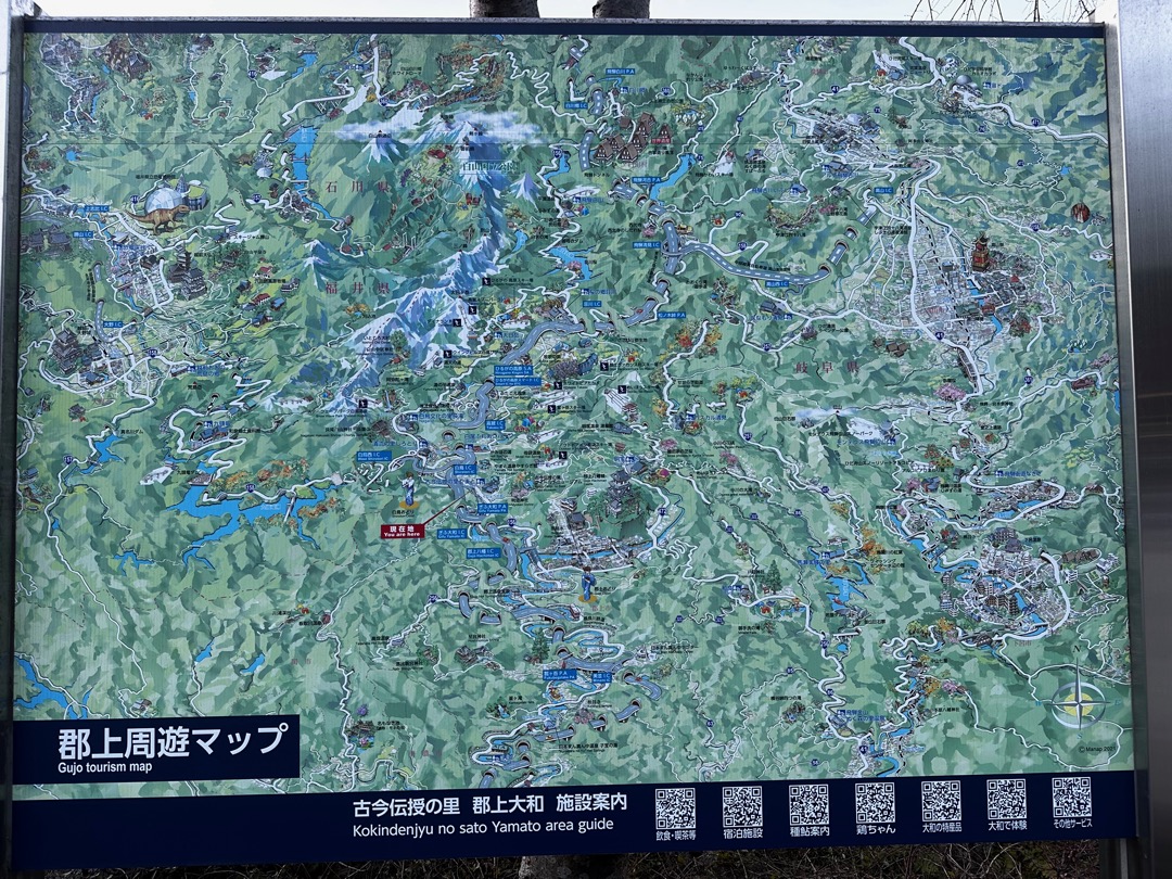 郡上周遊マップがありました。文字が潰れて見えないと思います。道の駅にこのマップがありますよということで、現地にて参考にしてください。