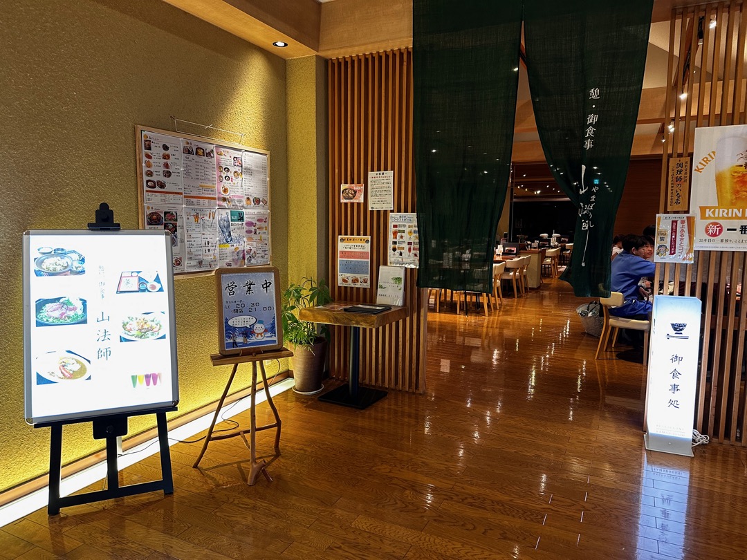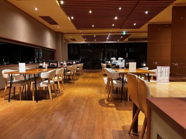 温泉にあるちょっと飲める処とは違って、しっかりとした食事ができるレストランで、夜9:00(ラストオーダー8:30)まで営業をしています。