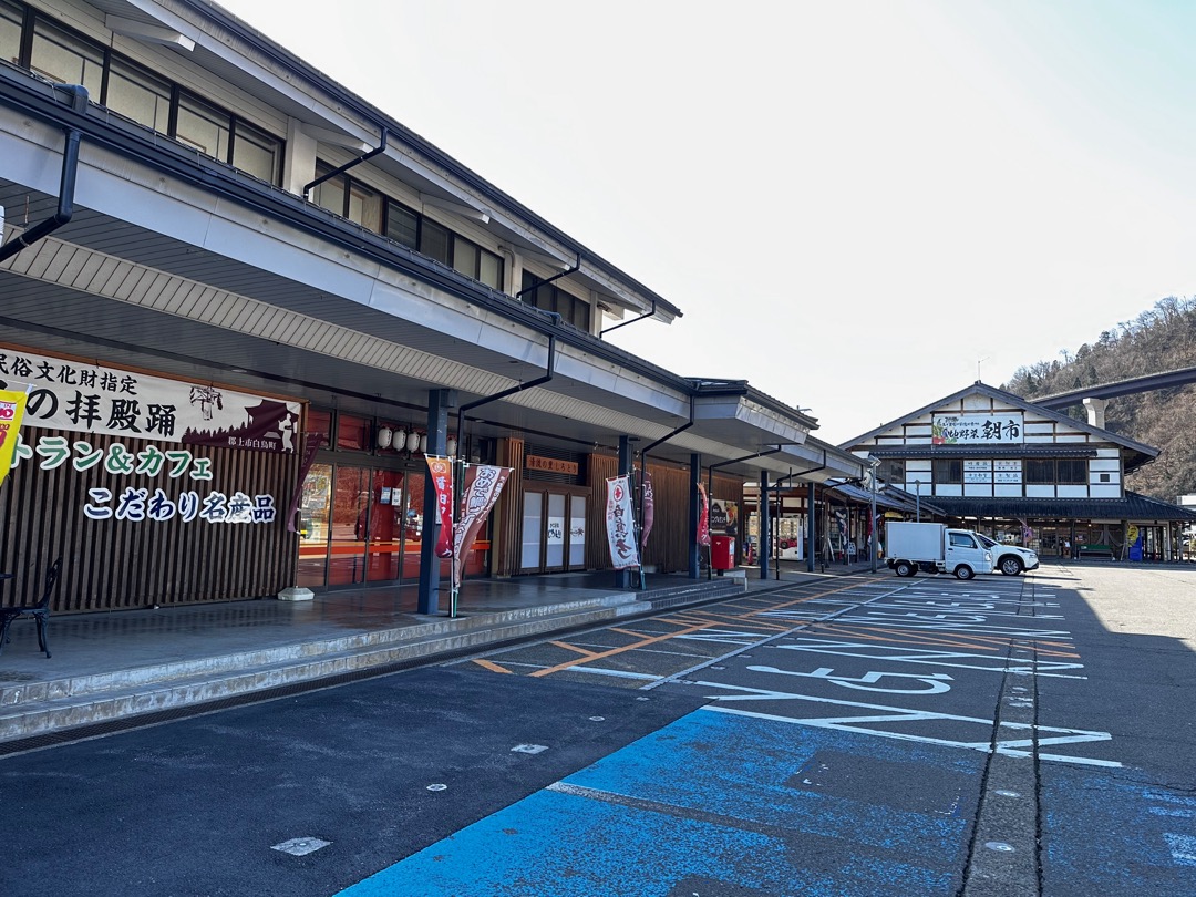 白山文化博物館に行くために、ここの道の駅に車を駐めました。ここの道の駅は中央がお店で、地場産品や農産物を扱っていますがお惣菜はありませんでした。建物に向かって左側に中規模なトイレ(小5、大4(和1、洋3 洗浄便座付き))があります。右側にはレストランがあります。ここも、WiMAX +5Gが入りません。道の駅のWi-Fiスポットはありますが駐車場からはアクセス出来ませんでした。