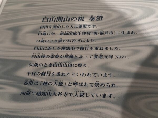 白山を開山した人は、泰澄(たいちょう)という人だそうです。隊長ではないです。