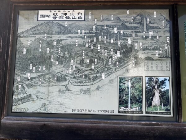 これから行く白山神社のジオラマです。実際に行った後にこの写真を観るとこのジオラマが造られた時にはまだあの素晴らしい本殿ではなかったようですね。