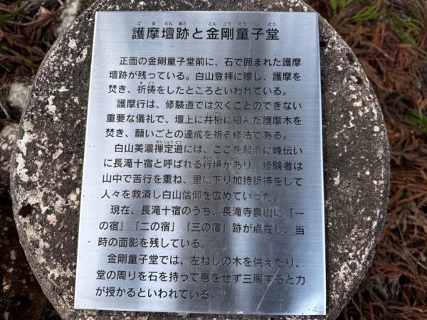 白山信仰の護摩壇跡と金剛童子堂です。