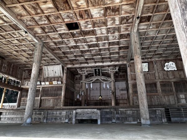 鳥居のように見えますが、斗栱があるので鳥居ではないですね。通常の神社の向拝柱、水引虹梁に相当するものですね。とてもめずらしい造りです。