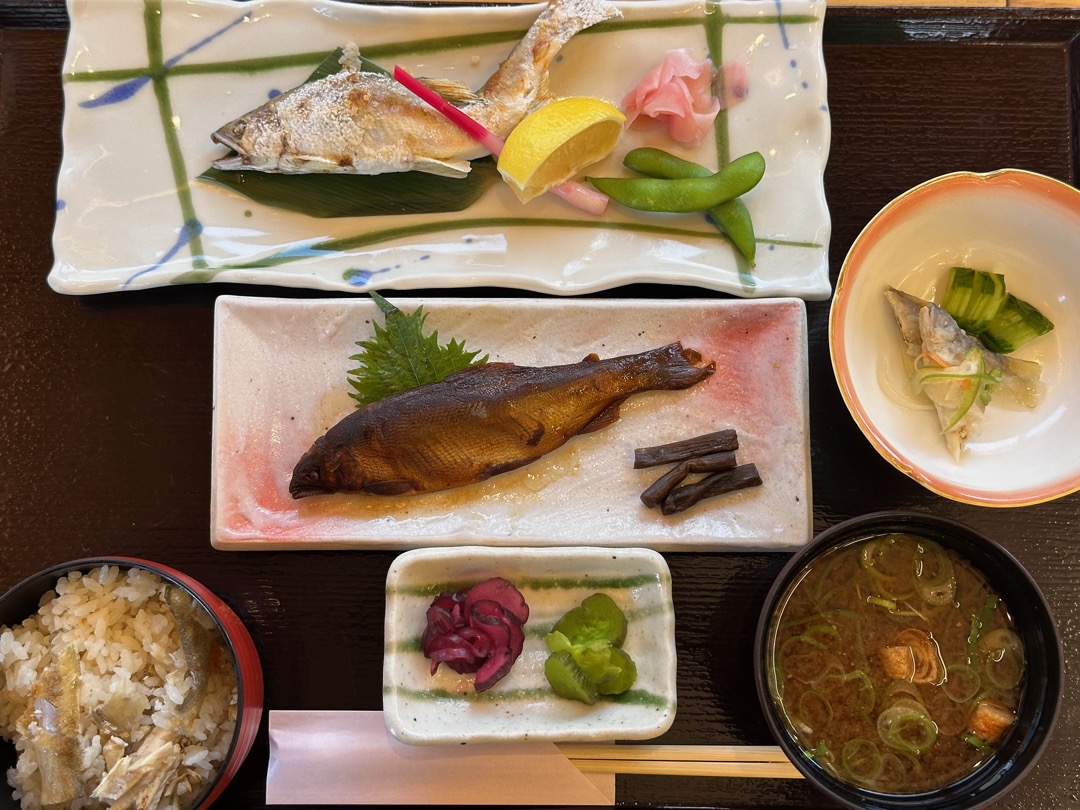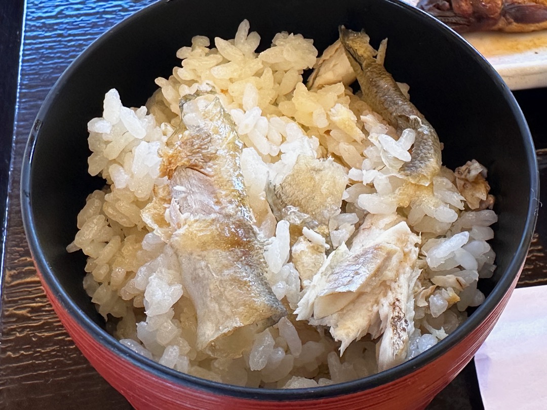 鮎飯です。鯛めしより美味しいかもしれません。鮎づくしのお昼で大満足でした。