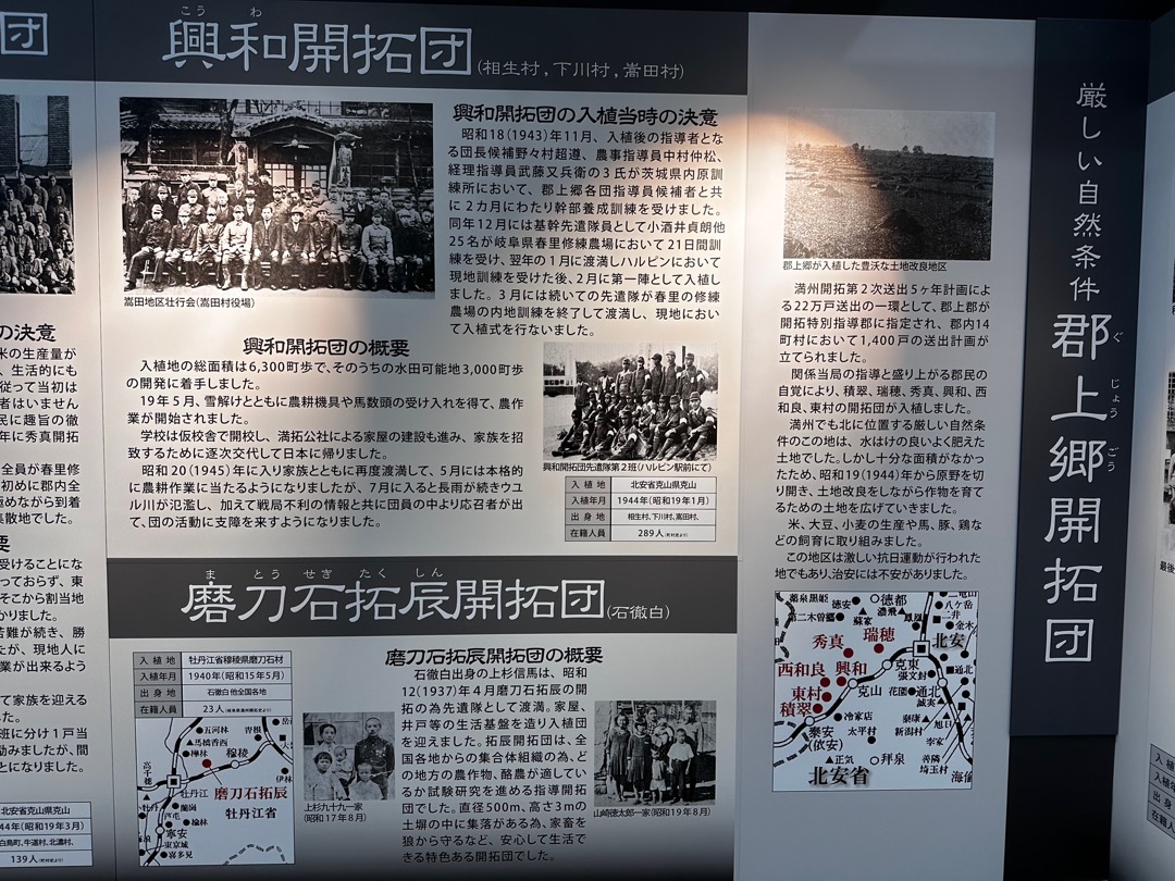入館料無料のこの施設は、高鷲から出た満蒙開拓団について展示していました。じっくり読めるように、ギャラリー形式でお送りします。