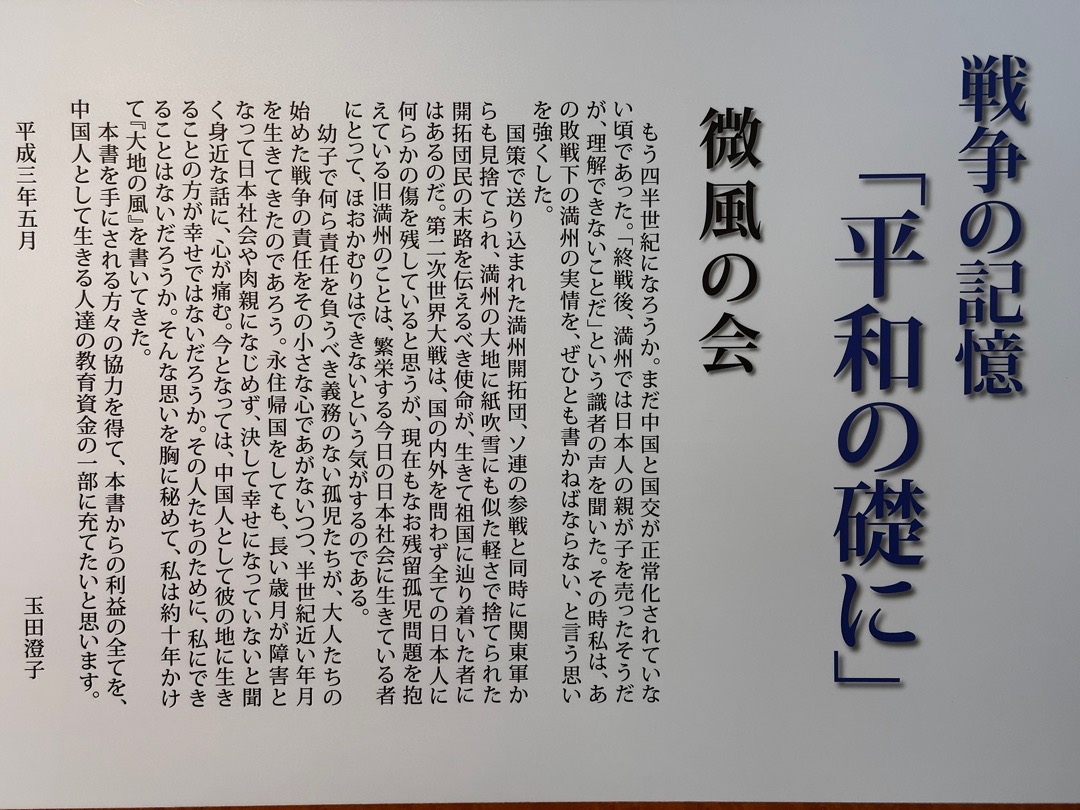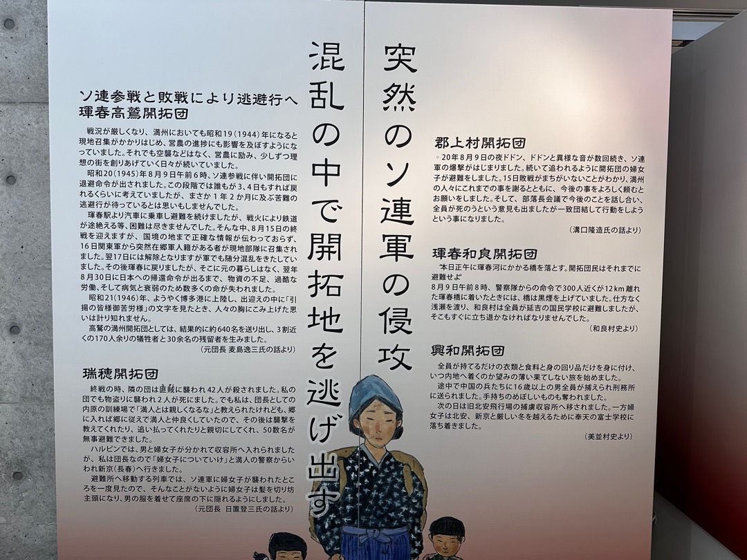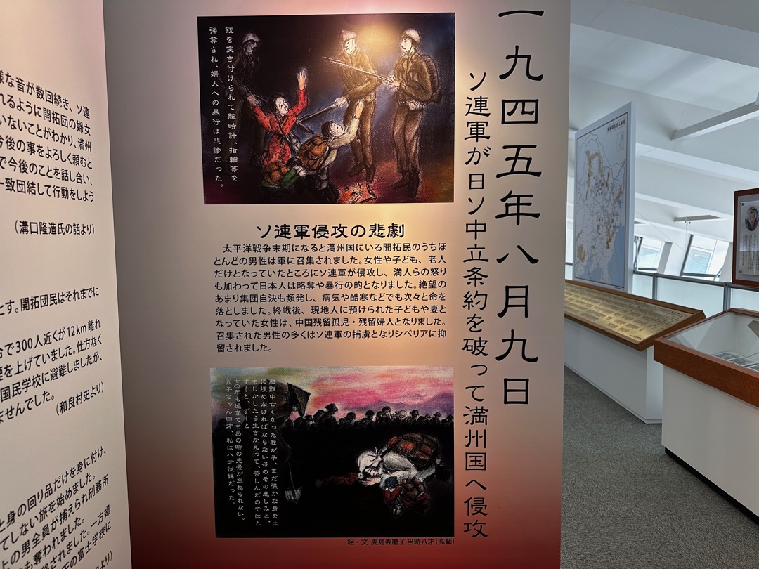 満蒙開拓団に関しては、舞鶴や佐世保で学びましたが、改めて天国から地獄だったのだろうと思いました。それにしても関東軍はひどいですね。ちなみに、この関東は関東地方の関東とは違って、満州国のあった山海関以東を関東と呼ぶことを知りました。(今さら感満載ですが…)