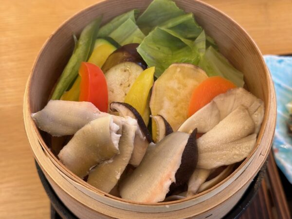 今日のご満悦おばさんは、鮎のせいろ蒸し定食2,200円でした。黙々と召し上がっておられました。