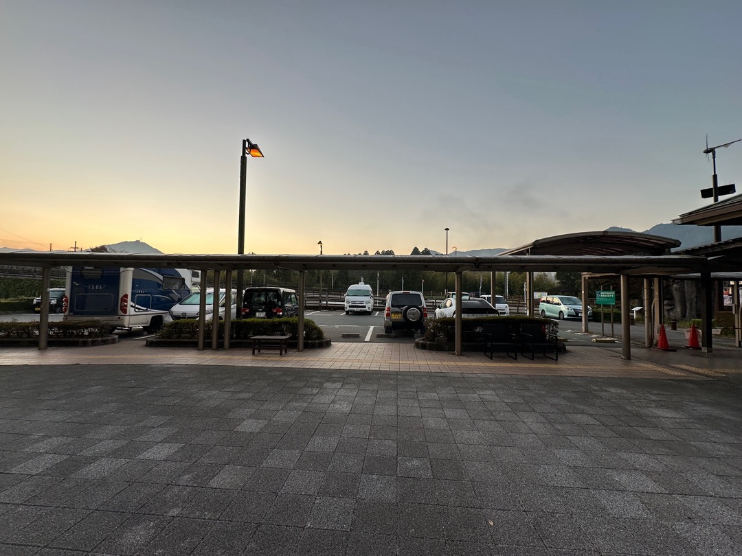 そして、今日の朝です。晴れました。車中泊をしたのは13〜14台くらいでした。ここの道の駅は、泊まるには問題ない道の駅です。