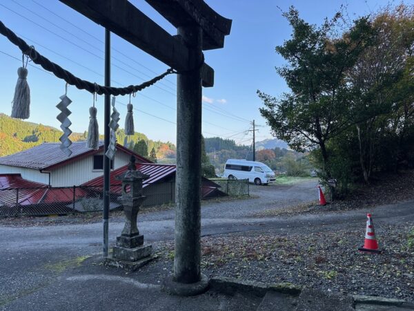 ここは神社の手前200メートルほどの直線が離合に注意が必要な道です。ただし、ドキドキするほど狭い道ではありません。